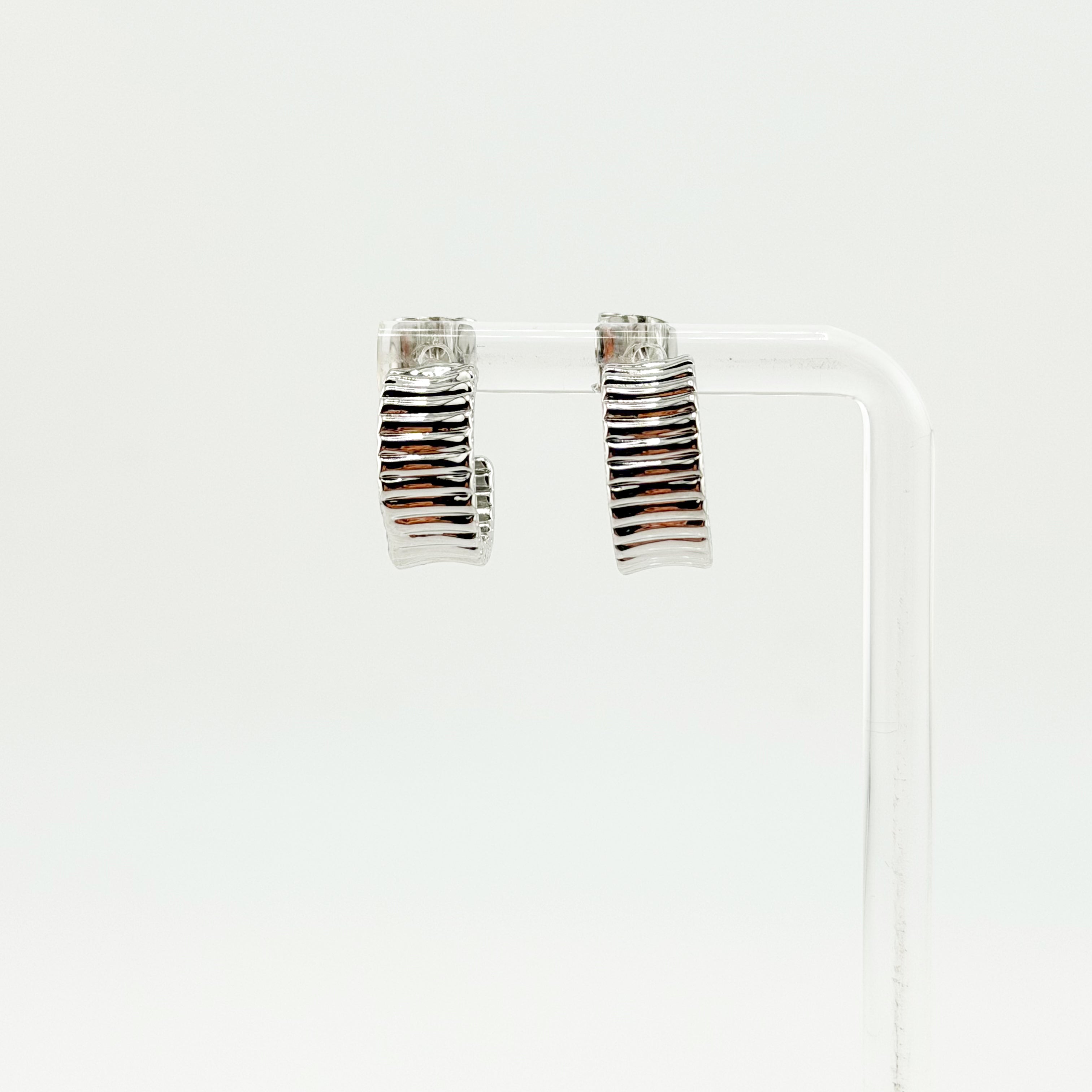 Chic, modern, and endlessly wearable — the Silver Ripple Studs bring a fresh twist to the classic hoop. Their sculpted, ribbed texture catches the light beautifully, creating subtle shine without overwhelming your look. Lightweight and polished, these studs are perfect for everyday outfits or elevating your evening style.