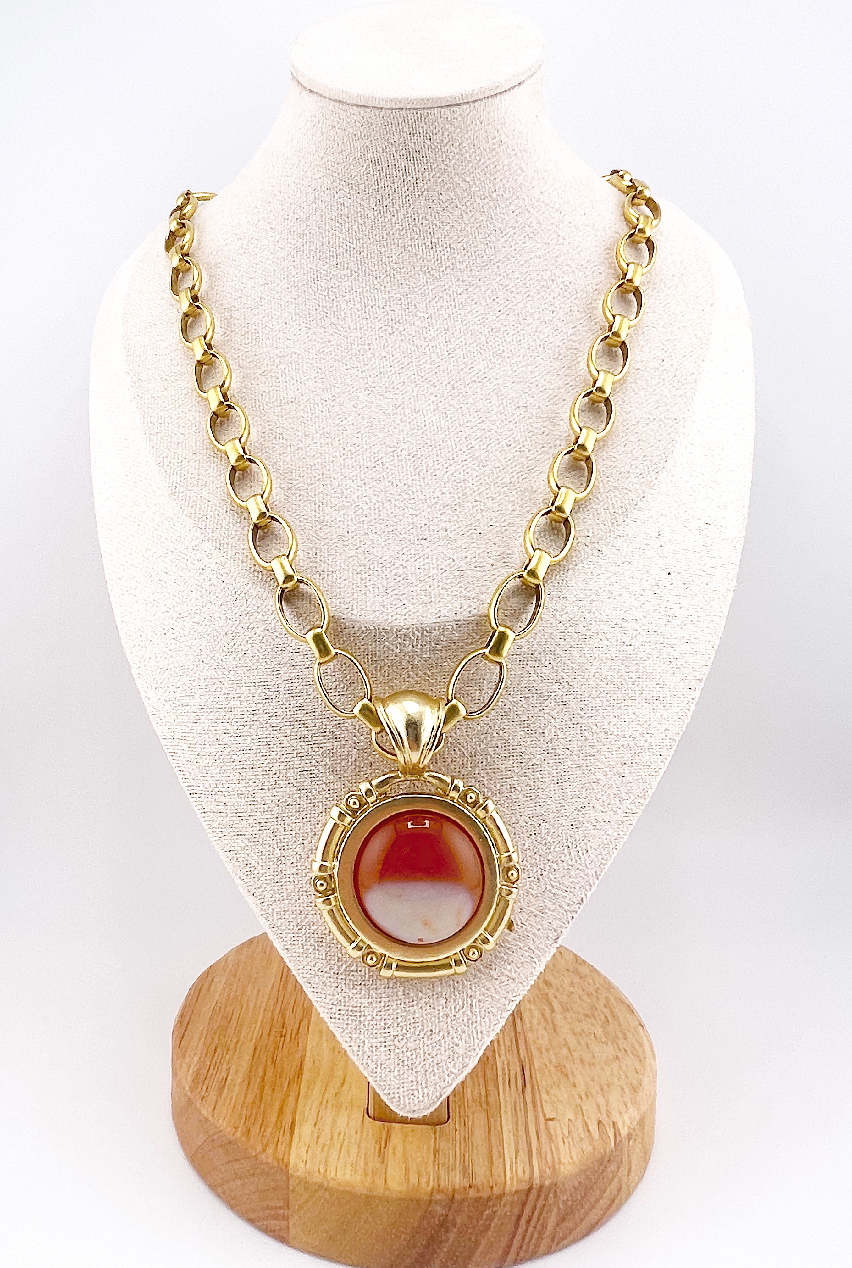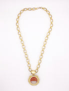 The Verona Agate Necklace – 23" 18K Gold-Plated Chain with Red Banded Agate Bezel Pendant