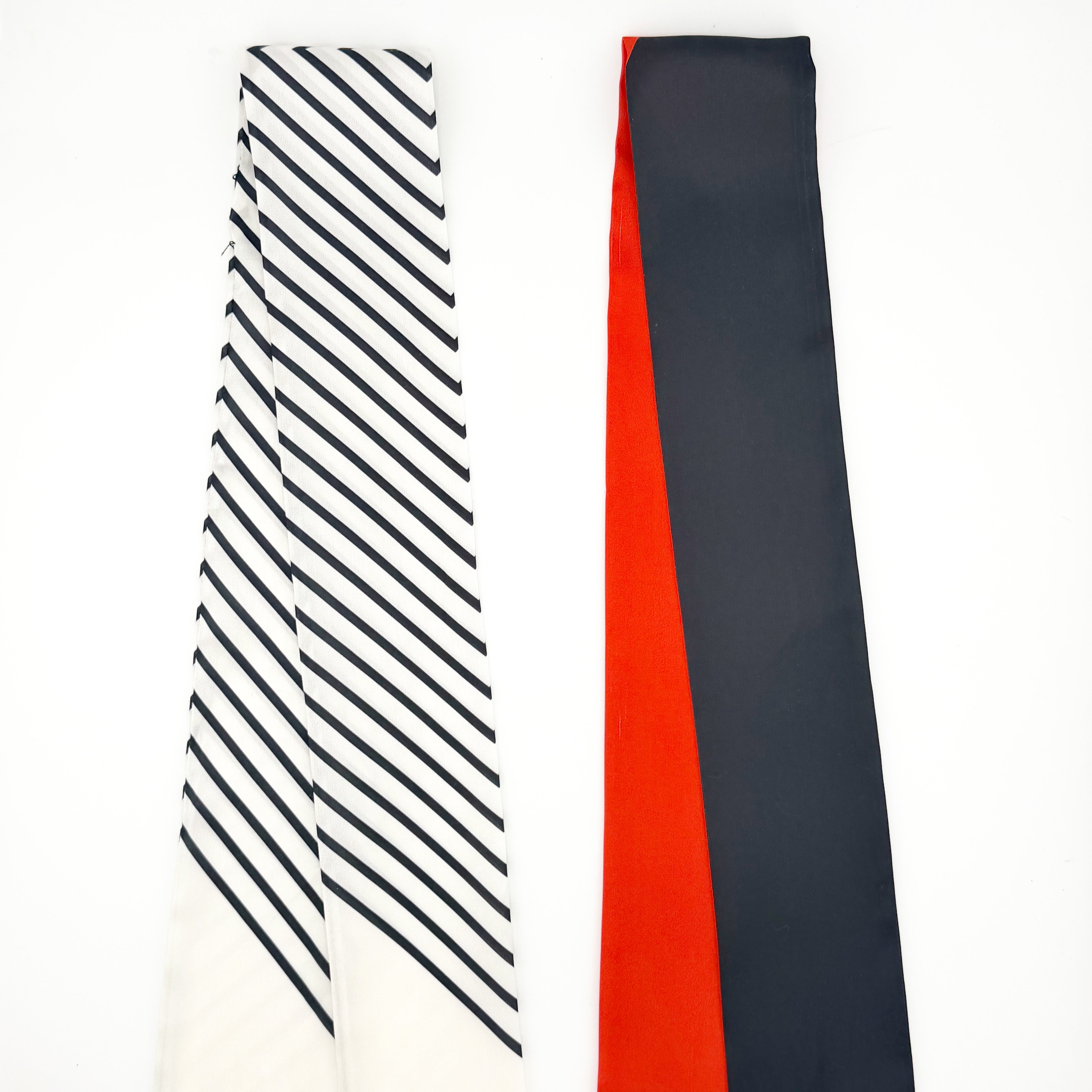 Bold yet beautifully minimal, the Modern Contrast Satin Scarf is all about clean lines and confident style. Featuring striking stripe and color-block designs, this narrow satin scarf delivers instant polish with a modern edge. It’s the perfect finishing touch when you want your outfit to feel sharp, intentional, and effortlessly elevated.