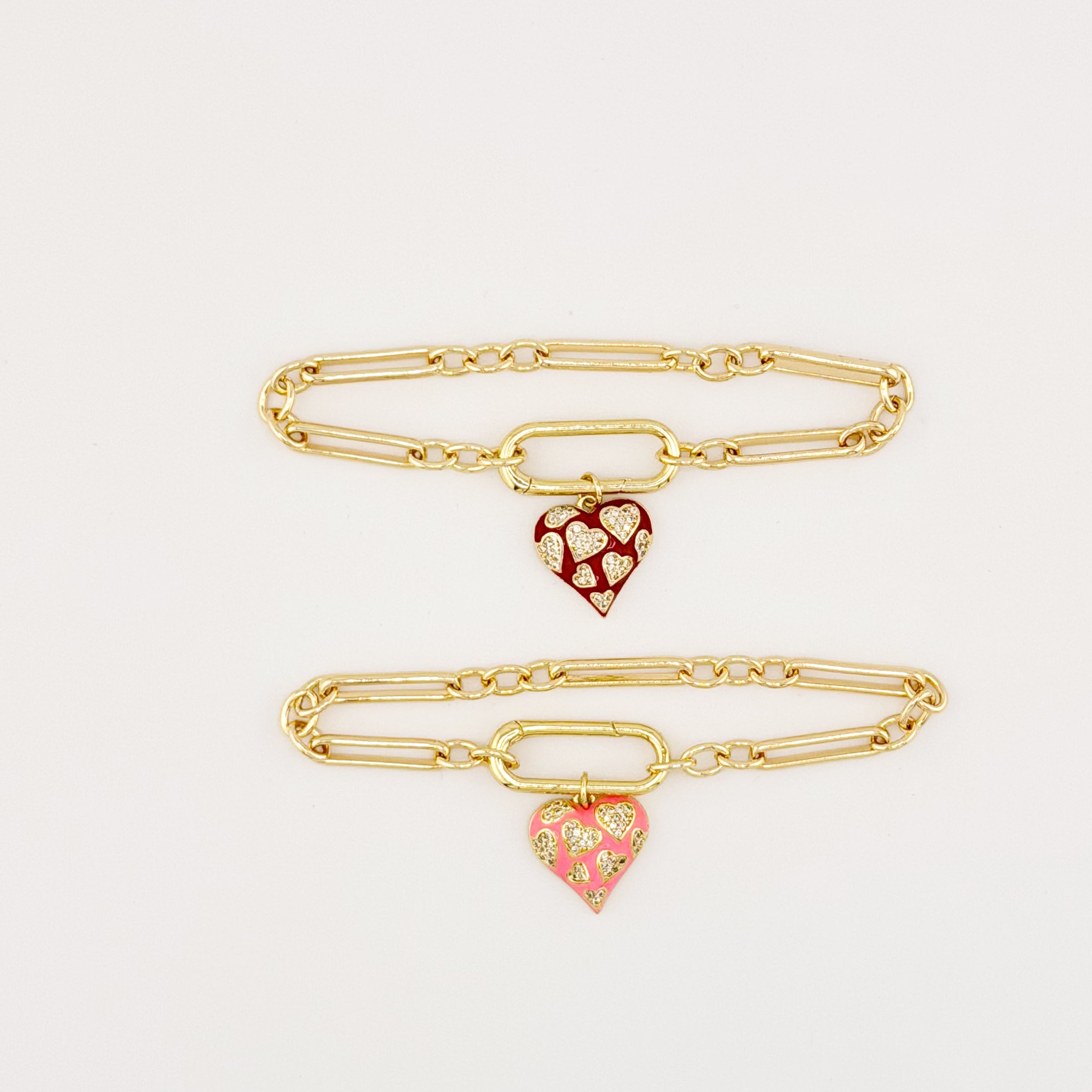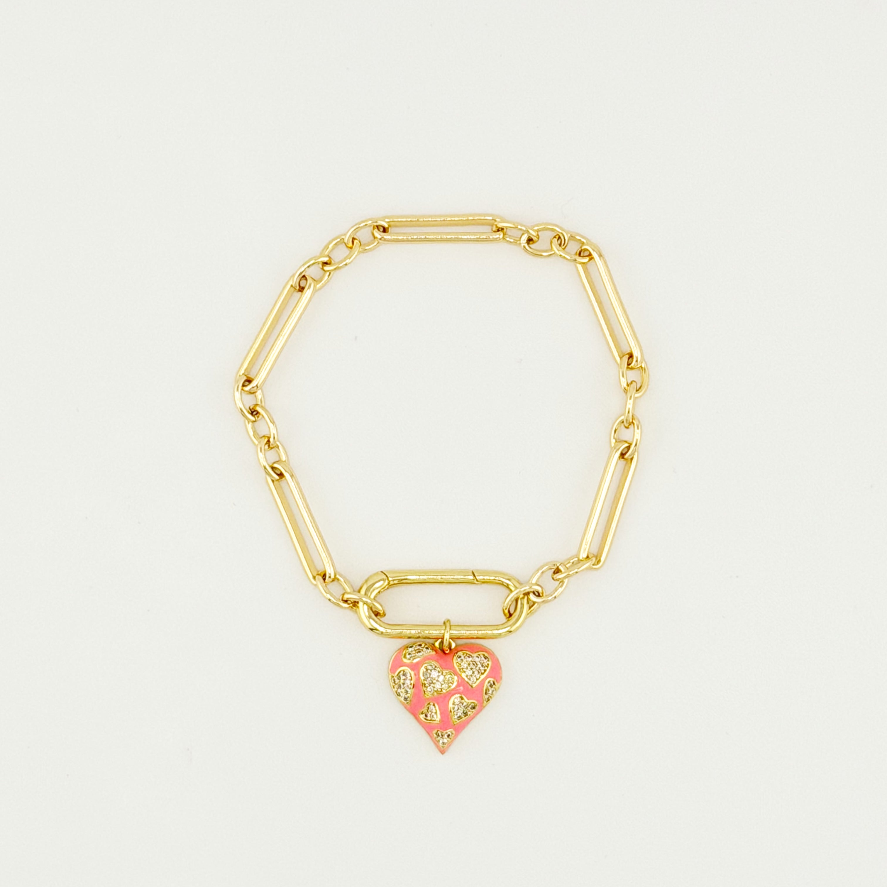 Playful, polished, and made to be personalized, the Sweetheart Link Charm Bracelet is a modern charm piece with endless styling potential. Featuring a bold paperclip-style chain and a removable heart charm, this bracelet lets you curate your look—swap charms, add layers, or wear it clean and simple. It’s equal parts fun and functional, designed for everyday life.