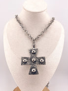 The Crusader Necklace – 32" Antiqued Silver Chain with 3" Studded Cross Pendant