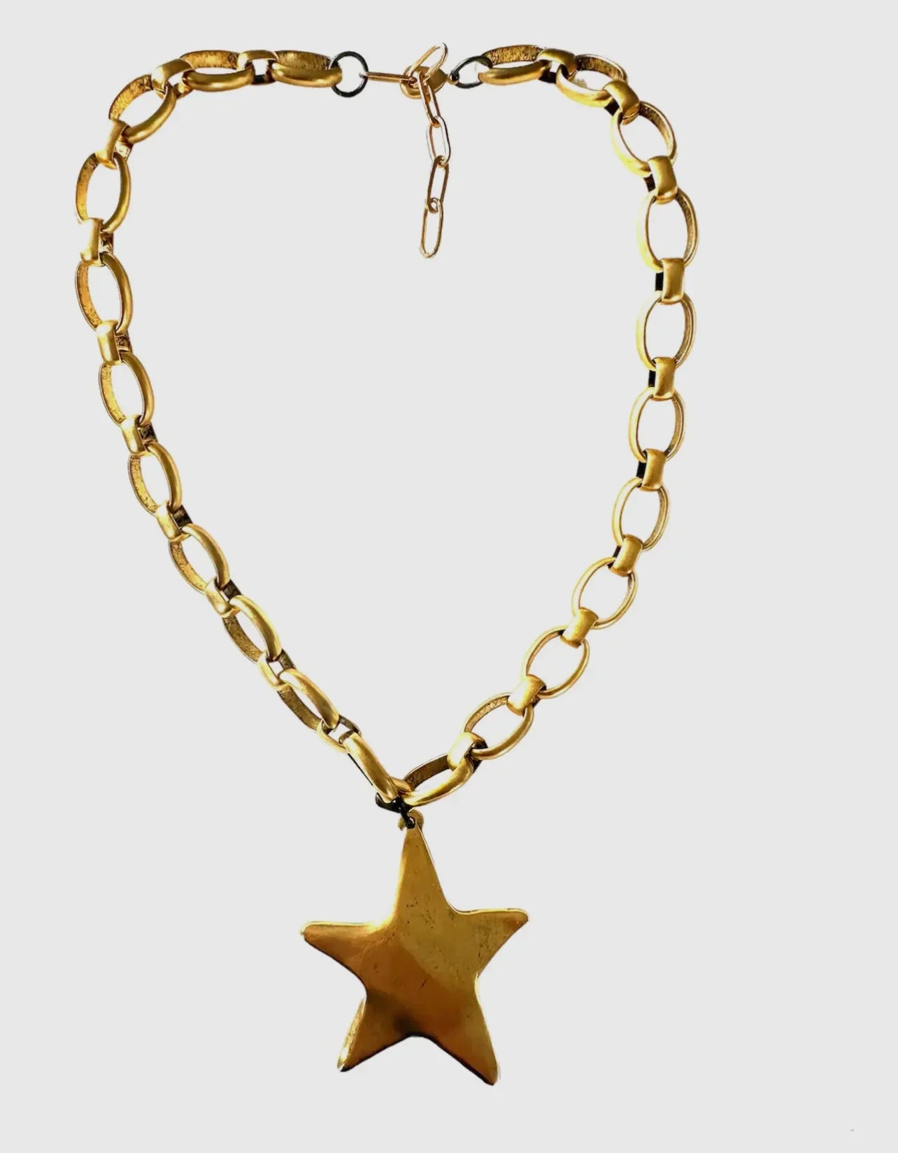 Bold, golden, and unapologetically eye-catching — The A Star Is Born Necklace is a statement piece that adds instant star power to any look. With its chunky antiqued gold links and a hammered star pendant, it strikes the perfect balance between vintage charm and modern edge.