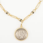 The Liberty Noir Necklace — Matte Gold Chain with Gunmetal Accents & Lady Liberty Dollar, 16"