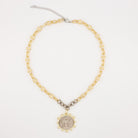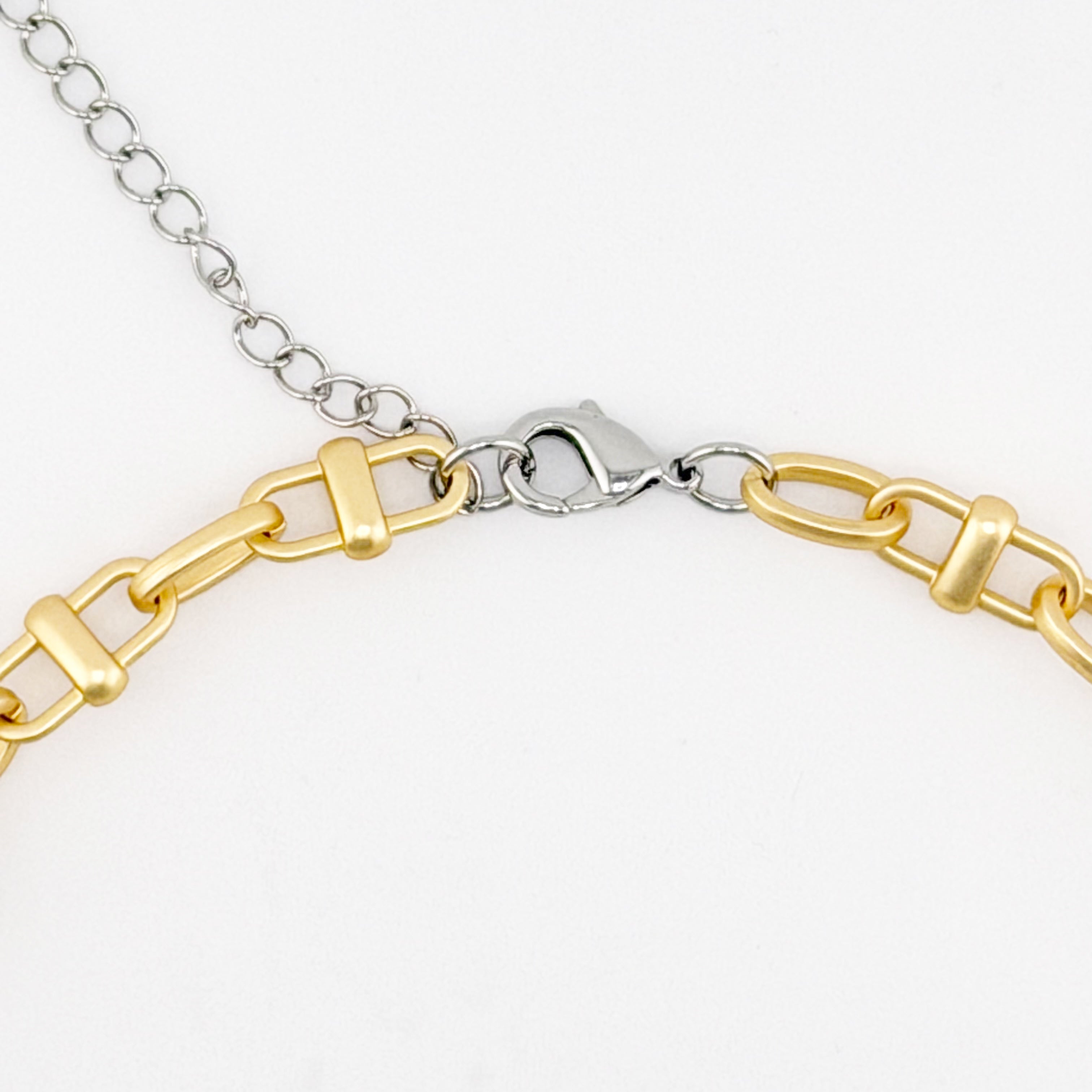- 20" matte gold link chain with silver accent detailing.