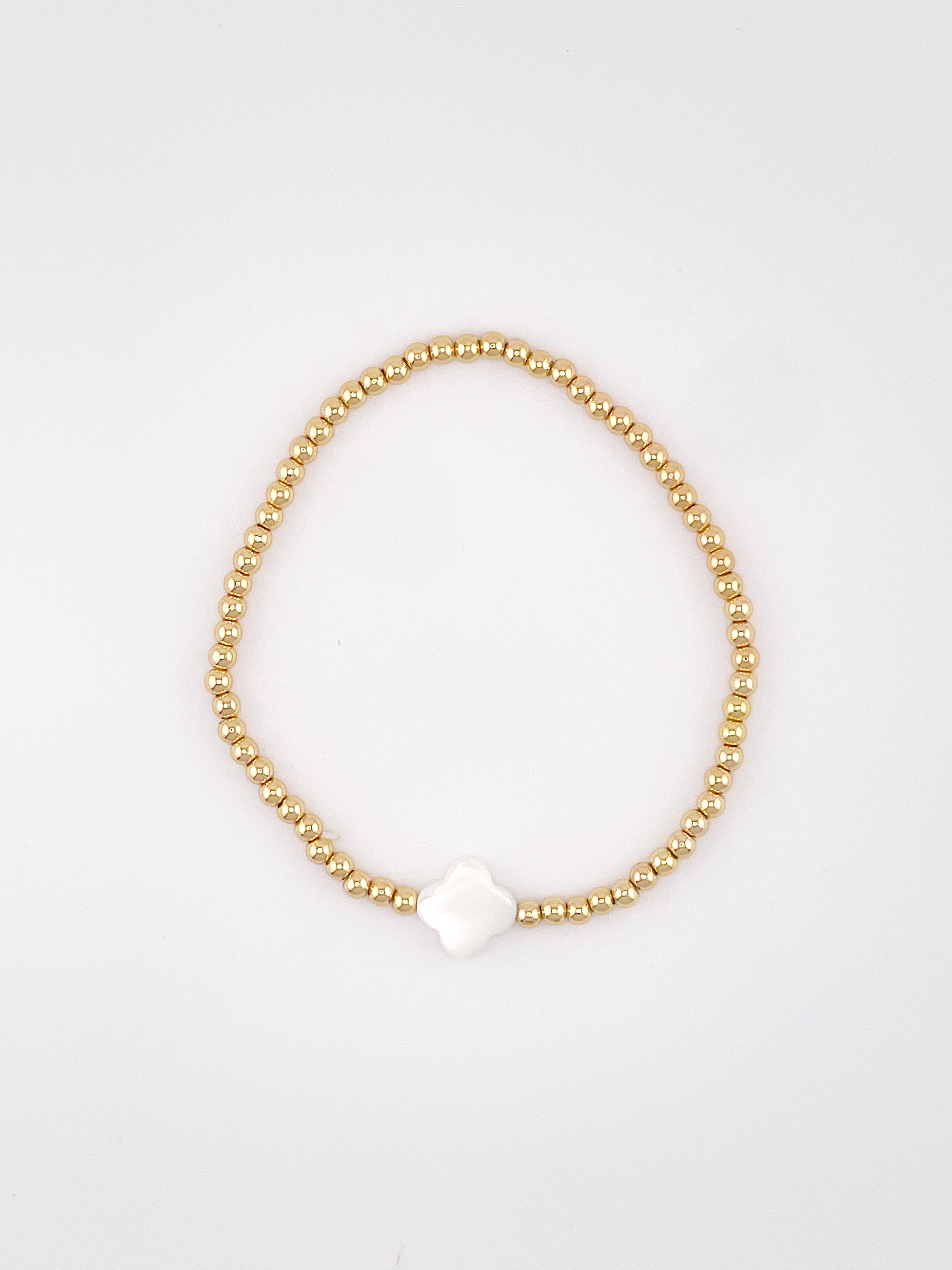 The Bloom Crush Bracelet – White Enamel Flower & 18K Gold-Plated Beaded Bracelet