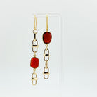 Looking for earrings that are bold yet refined? The Crimson Link Earrings pair rich, faceted red gemstones with sleek gold chain links for a look that’s both modern and timeless. Their elongated silhouette adds elegant movement and a warm pop of color that instantly elevates any outfit.