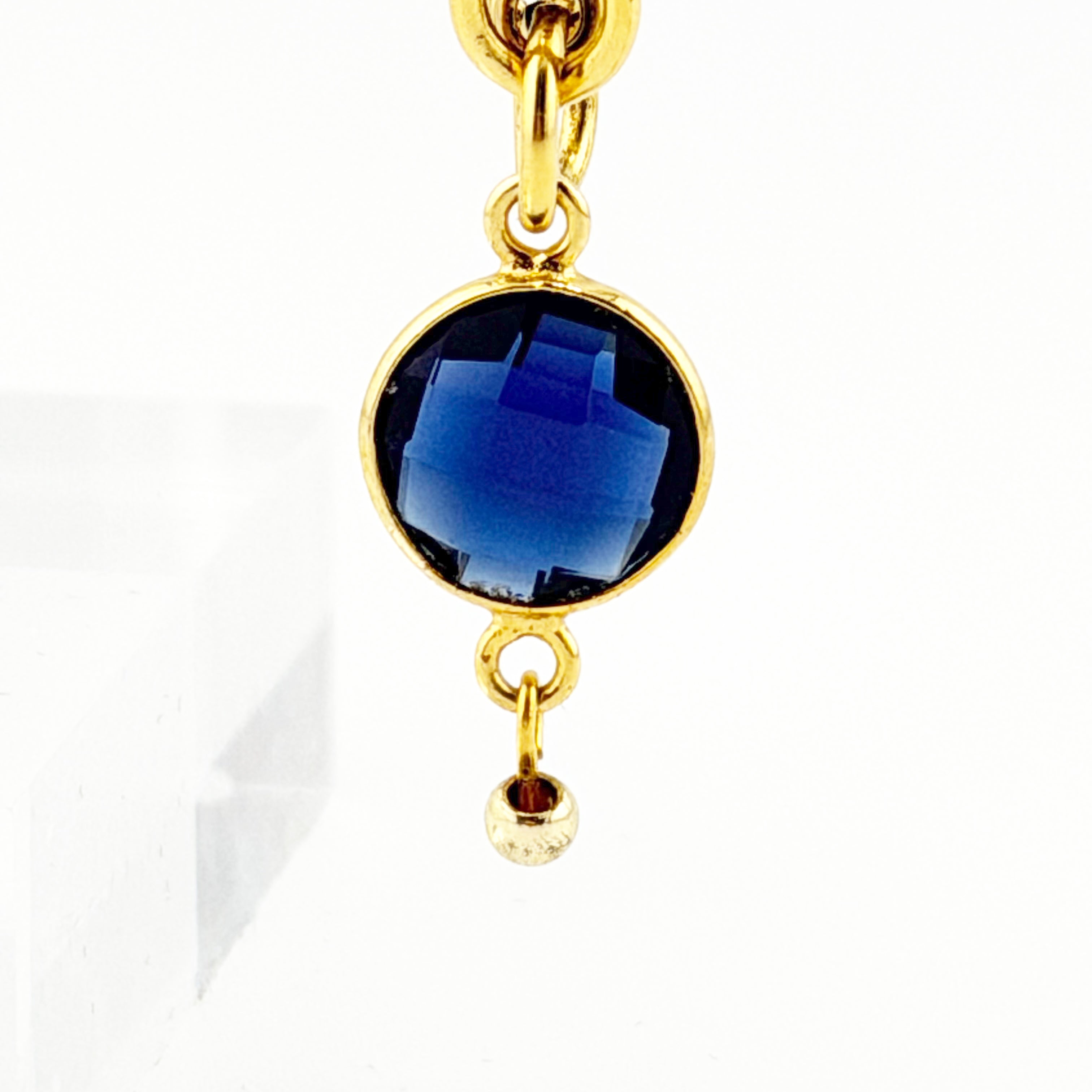 - Gold Bezel Setting: Polished and classic, offering rich contrast to the deep blue stones.
