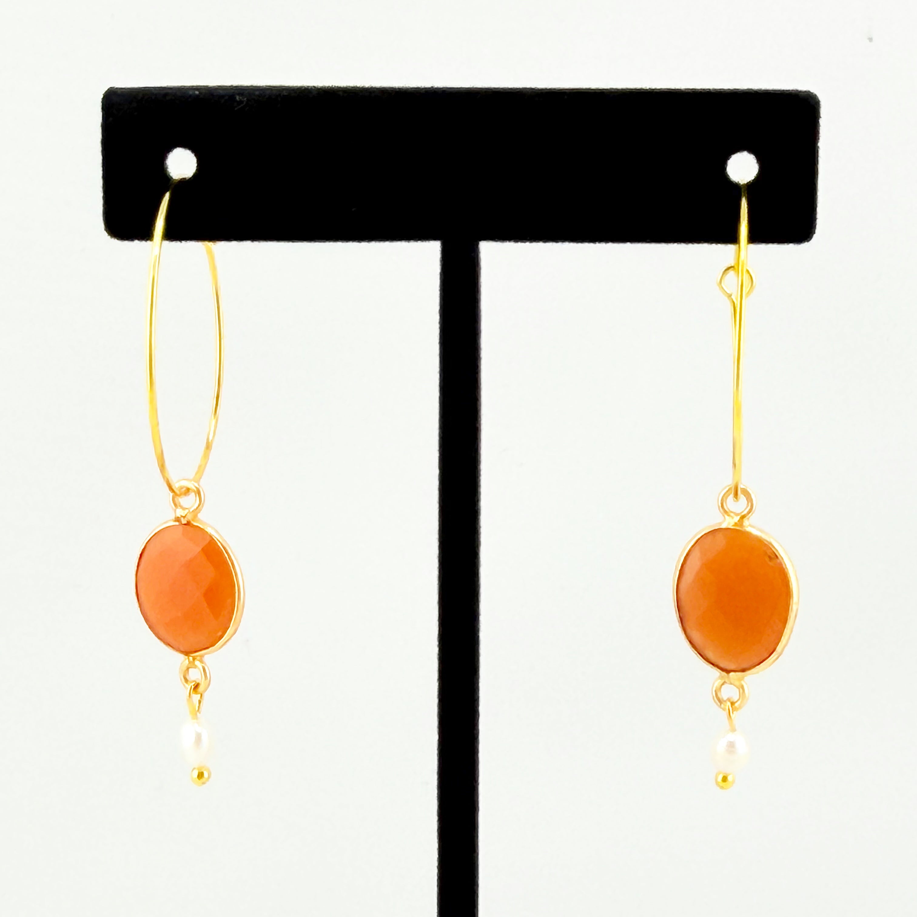 Looking for earrings that bring warm, effortless glow to every outfit? The Ember Drop Earrings blend the radiance of gold with the rich, sunset-toned beauty of faceted moonstone in a peachy-pink tone. Finished with a delicate freshwater pearl drop, these earrings strike the perfect balance of earthy elegance and refined sophistication.